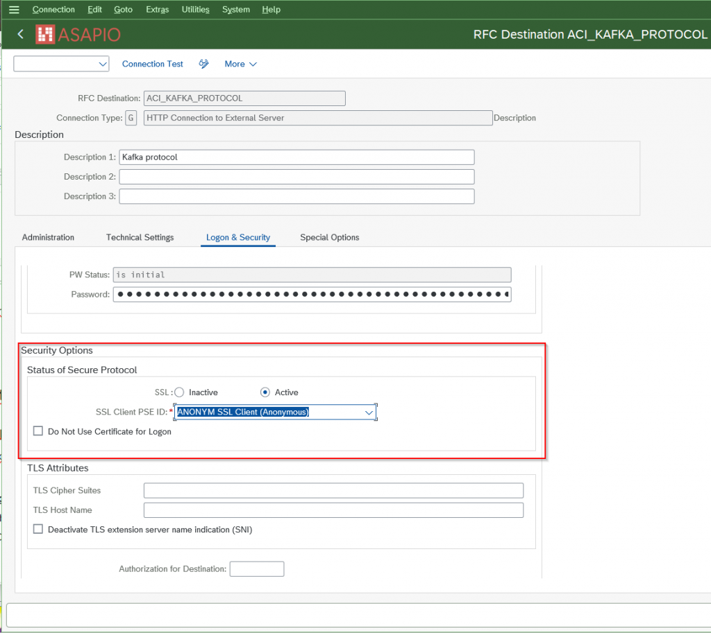 While creating the RFC connection to Confluent REST Proxy (see section above), please specifiy the authentification method.